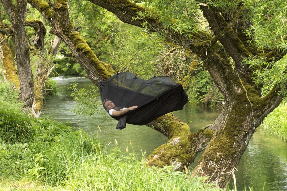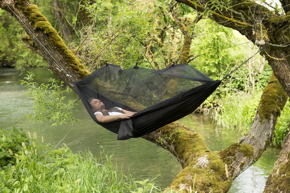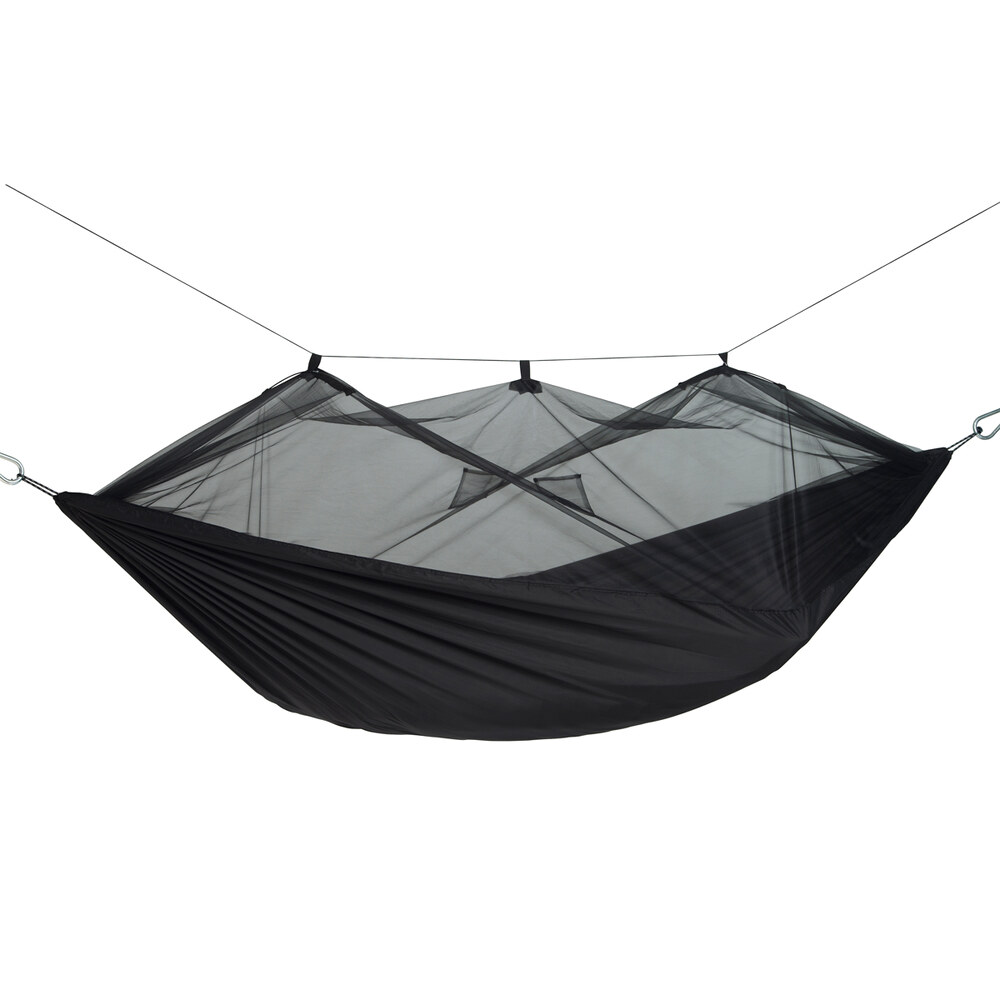 A szúnyogmentességet biztosító, kültéri függőágy azok kényelmére szolgál, akik nem szeretnek cipekedni, és szívesen alszanak a szabadban. Mindkét oldala használható, szúnyoghálóval vagy anélkül.