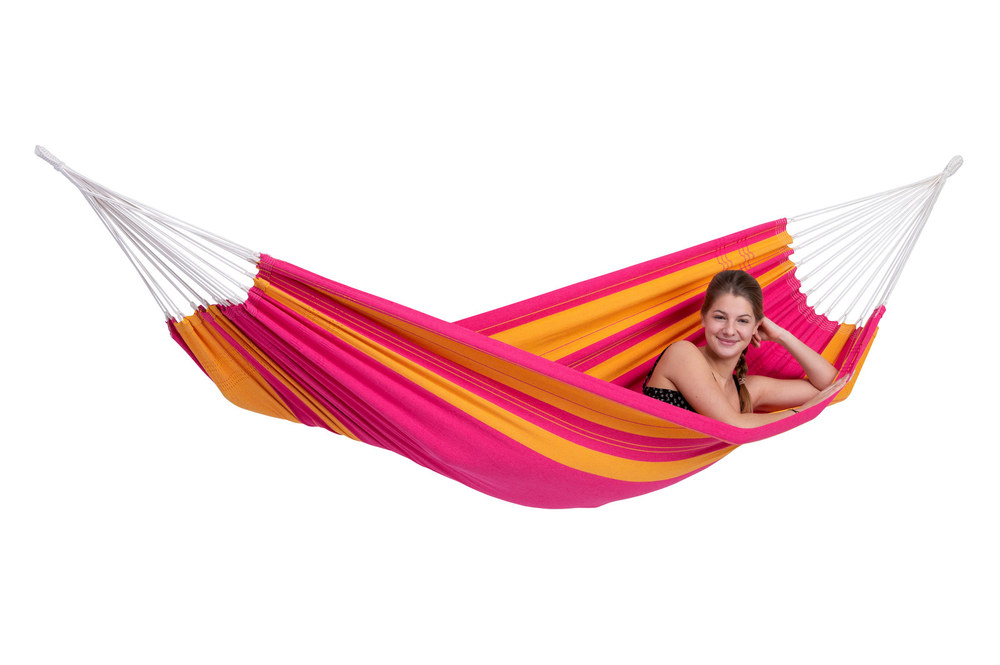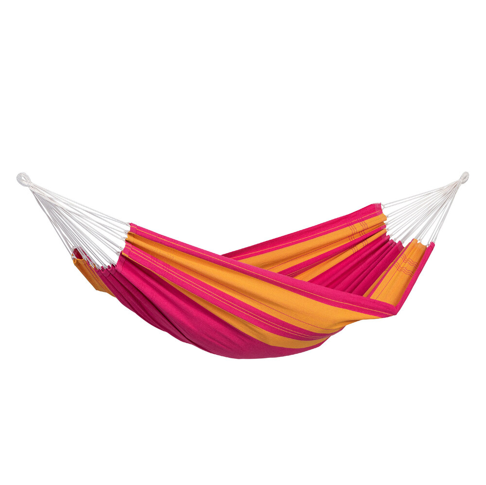 A választékunk legkisebb eredeti brazil függőágya: csak 310 cm hosszú, így egy kisebb erkélyen is elfér, de jó hozzá a Sumo állvány is.