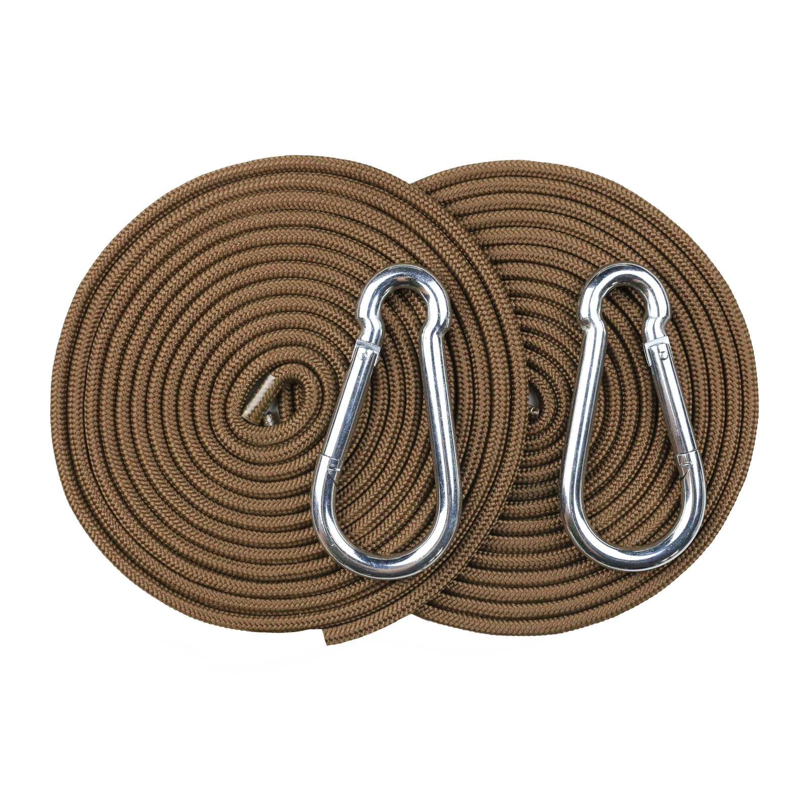 A kötelet duplán érdemes áthurkolni a fán/gerendán/bármin, és a karabinerrel egyszerűen ráakasztod a függőágyat, lásd a bolgban...