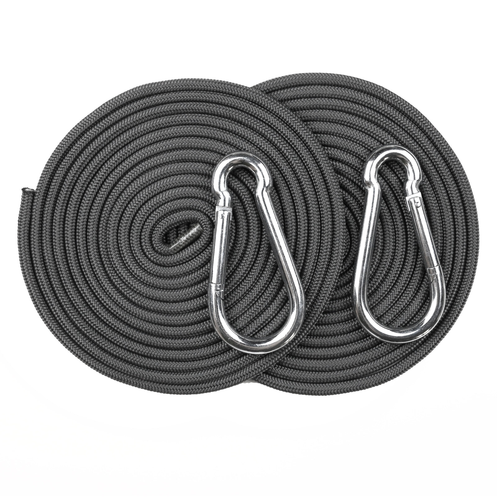 A kötelet duplán érdemes áthurkolni a fán/gerendán/bármin, és a karabinerrel egyszerűen ráakasztod a függőágyat, lásd a bolgban...