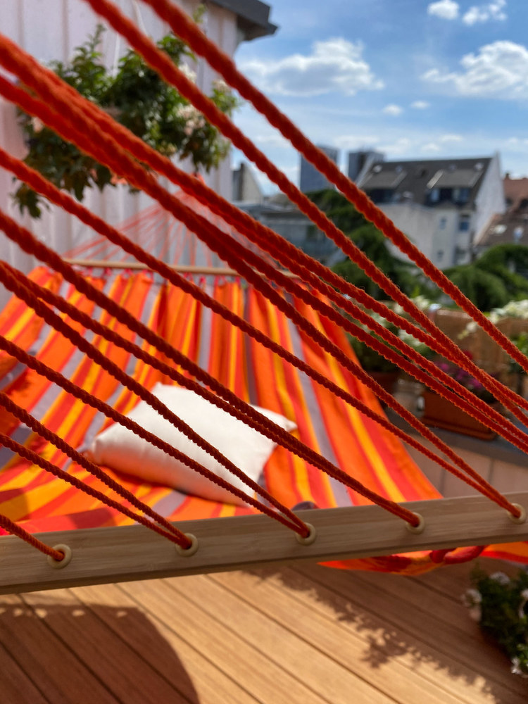 A La Siesta Alisio függőágy egész szezonban a szabadban hagyható! Az Alisio ugyanis HamacTex® polipropilénől készül. Ez az alapanyag ellenáll az időjárás viszontagságainak, gyorsan szárad, és mégis meglepően hasonló a pamuthoz – mind küllemre, mind pedig tapintását tekintve. A függőágy szakadásbiztos széleit egy speciális technikával, a vetülékfonalak duplázásával alakítják ki – így tulajdonosa hosszú évekig élvezheti a La Siesta Alisio által nyújtott békés oázis érzését.