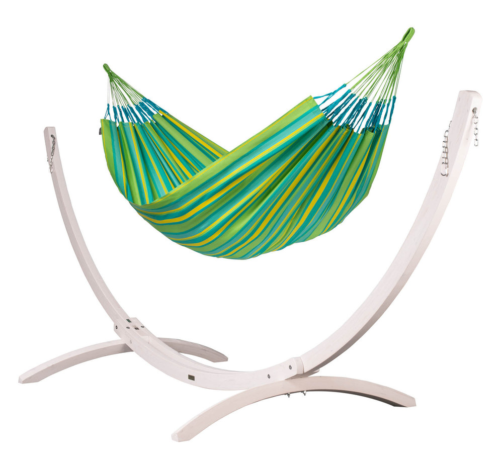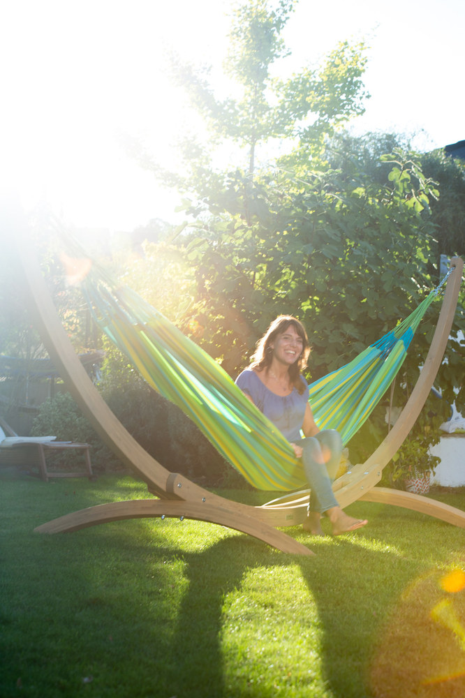A La Siesta Brisa függőágy egész nyáron a szabadban hagyható! A Brisa ugyanis HamacTex® polipropilénől készül. Ez az alapanyag ellenáll az időjárás viszontagságainak, gyorsan szárad, és mégis meglepően hasonló a pamuthoz – mind küllemre, mind pedig tapintását tekintve. A függőágy szakadásbiztos széleit egy speciális technikával, a vetülékfonalak duplázásával alakítják ki – így tulajdonosa hosszú évekig élvezheti a La Siesta Brisa által nyújtott békés oázis érzését.