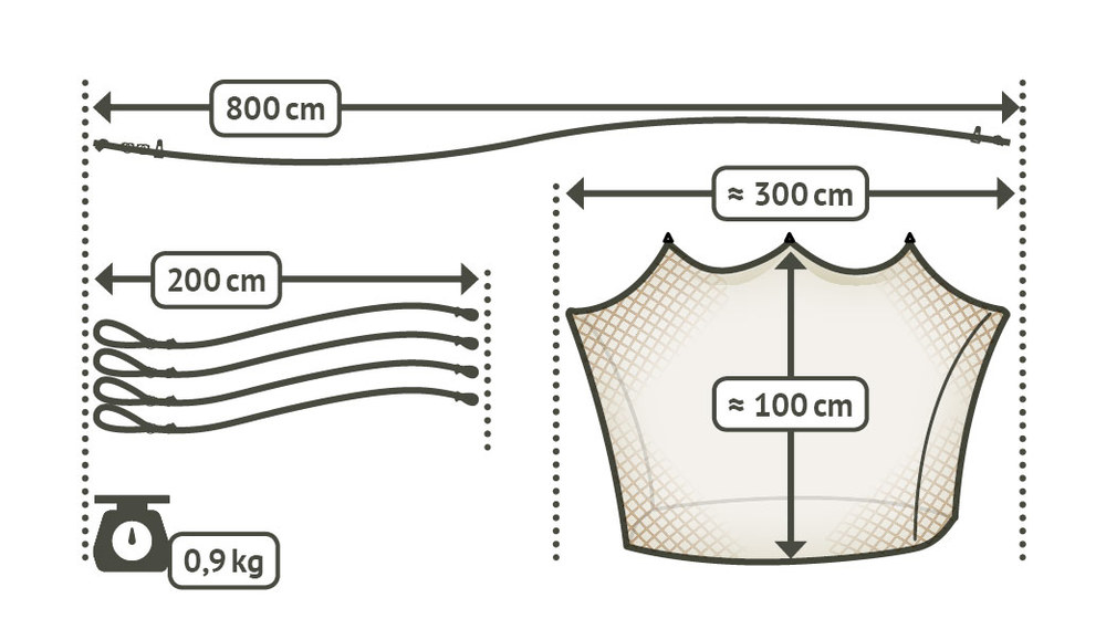 Miben tud ez a modell többet, mint más szúnyoghálók? Szélesebb az alja, és négy irányban kifeszíthető (a tartozék zsinórokkal és cövekekkel), így a szúnyogháló oldalt sem borul rá a függőágyra, hagy valamennyi teret, ezáltal nem csípnek meg a szúnyogok. Ez különösen nagy melegben fontos, amikor nem vagy betakarózva/felöltözve és nem használasz underquiltet.