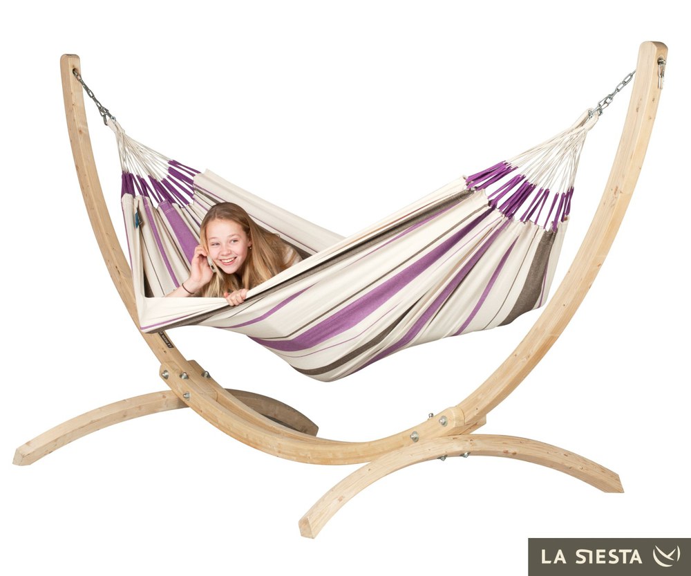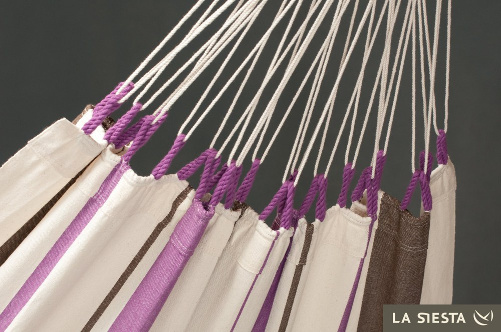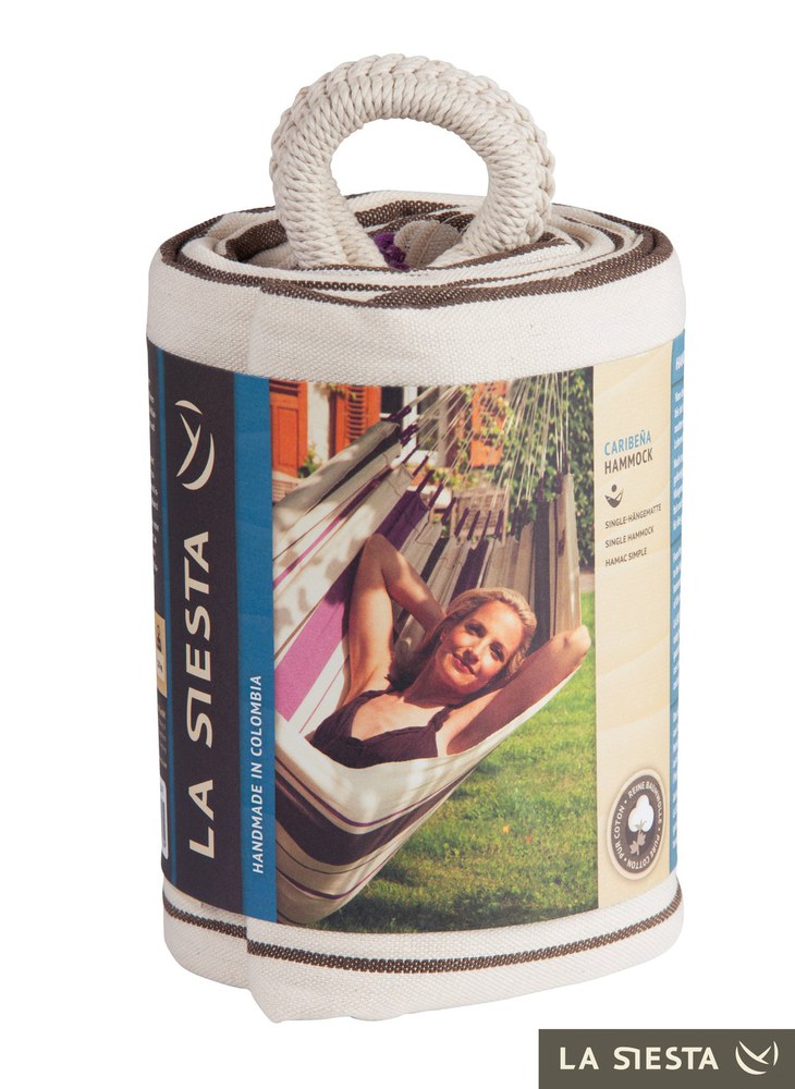 A kolumbiai textil függőágyak jellegzetes tulajdonsága a nyitott felfüggesztő hurok, mely hozzájárul a függőágy jobb kinyithatóságához. A Caribena függőágy két vidám színben kapható: kék és lila csíkos.