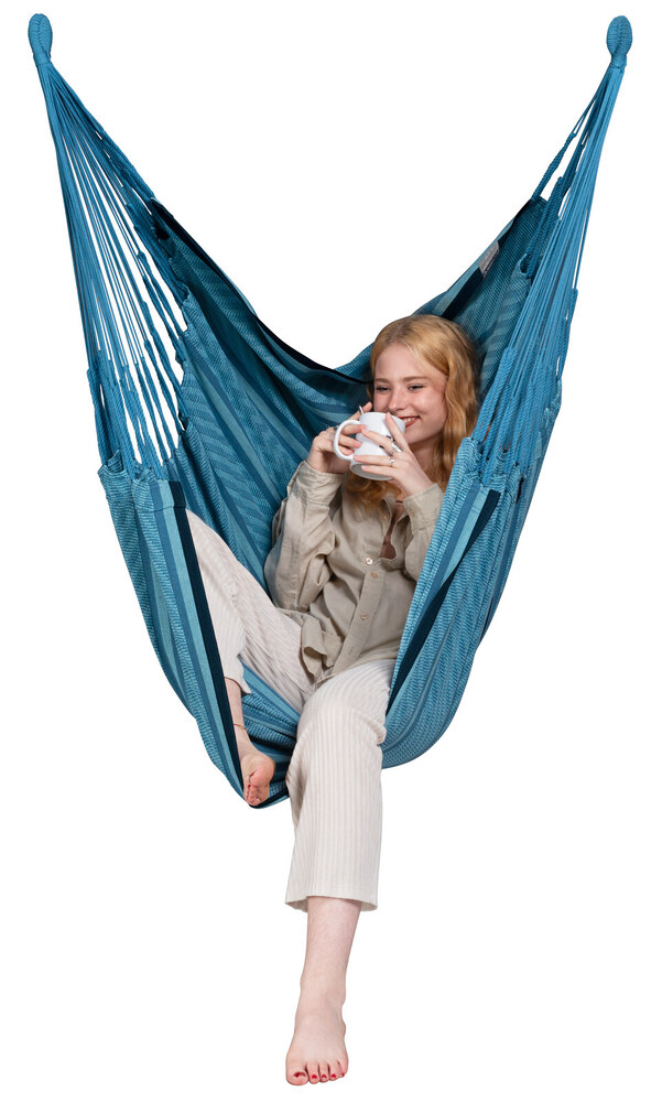 A Cumbia függőfotel fantasztikusan kényelmes, organikus pamut anyagból készült - a súlytalanság érzetét biztosítja.