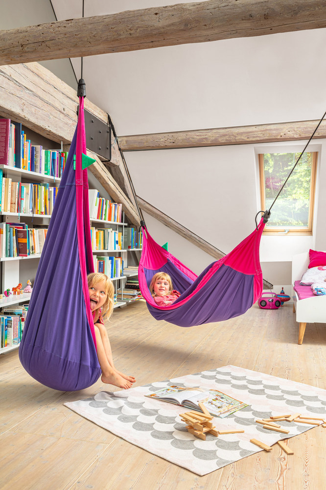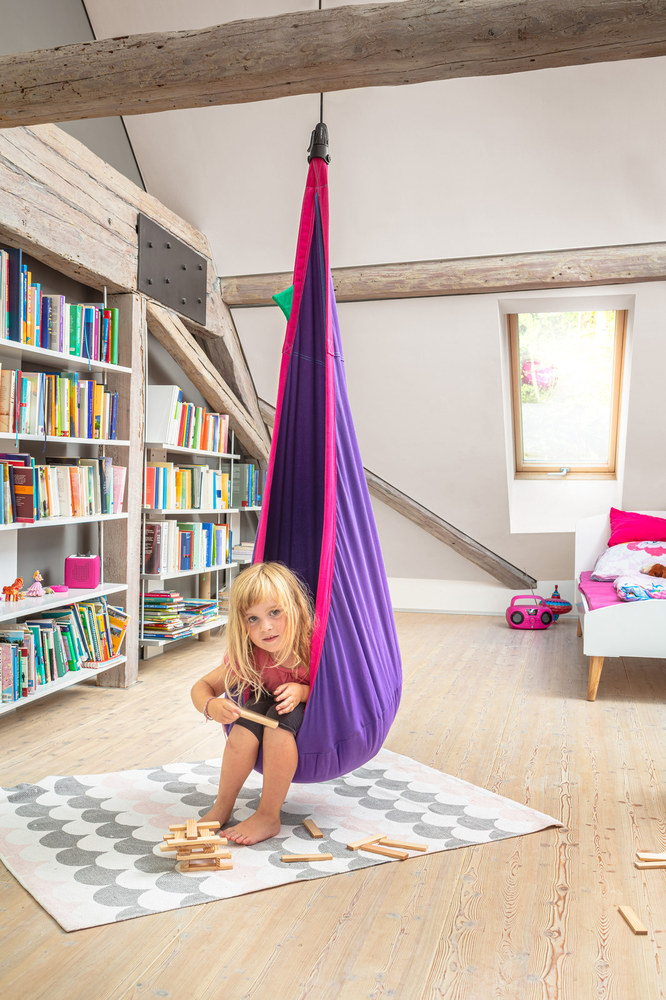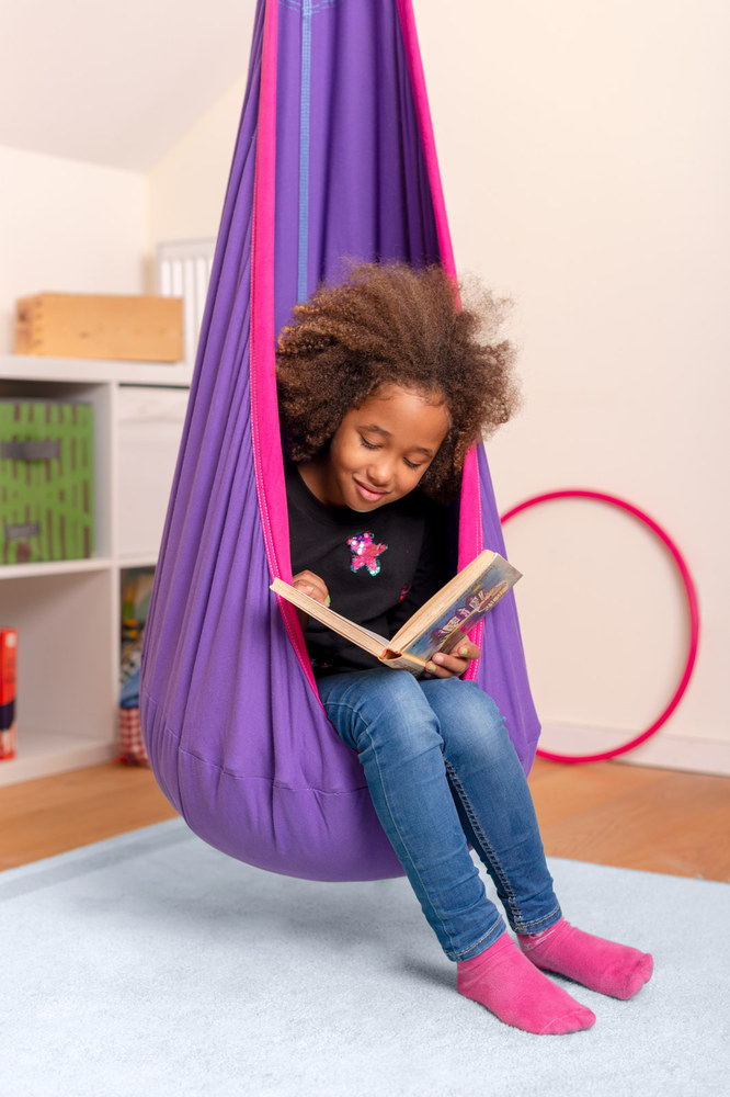 Egy pontba függeszthető hinta 3 és 10 év közötti gyerekeknek. Tökéletes menedék, nyugodt kikapcsolódás, kényelmes játszókuckó, ideális fejlesztőeszköz.