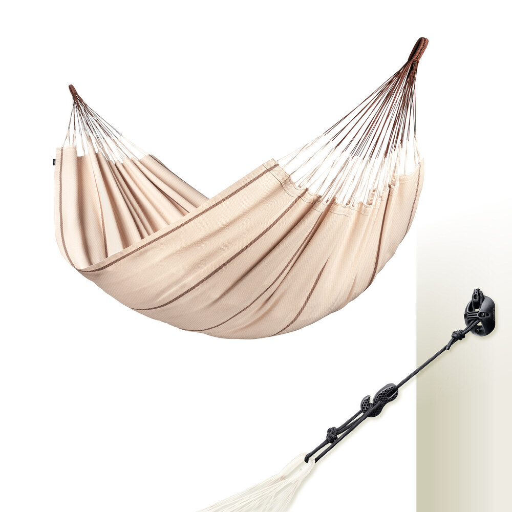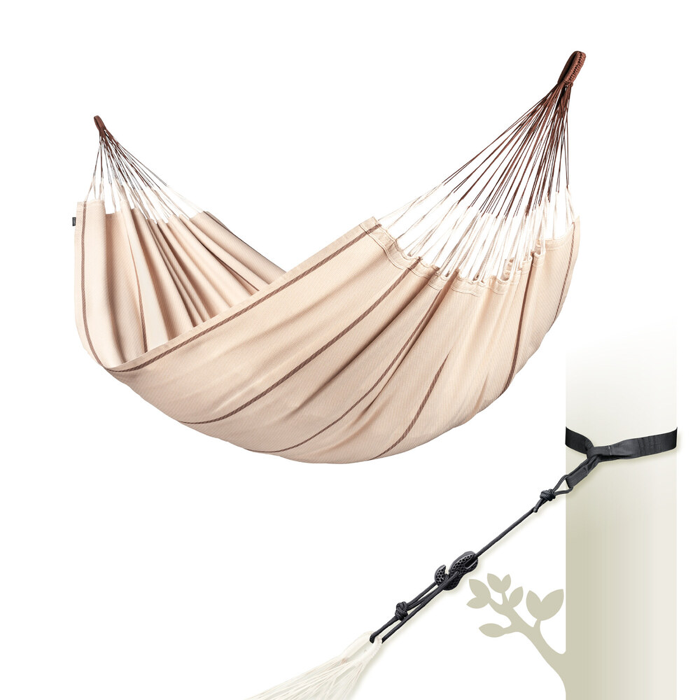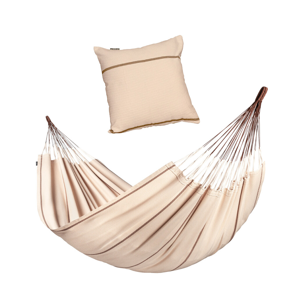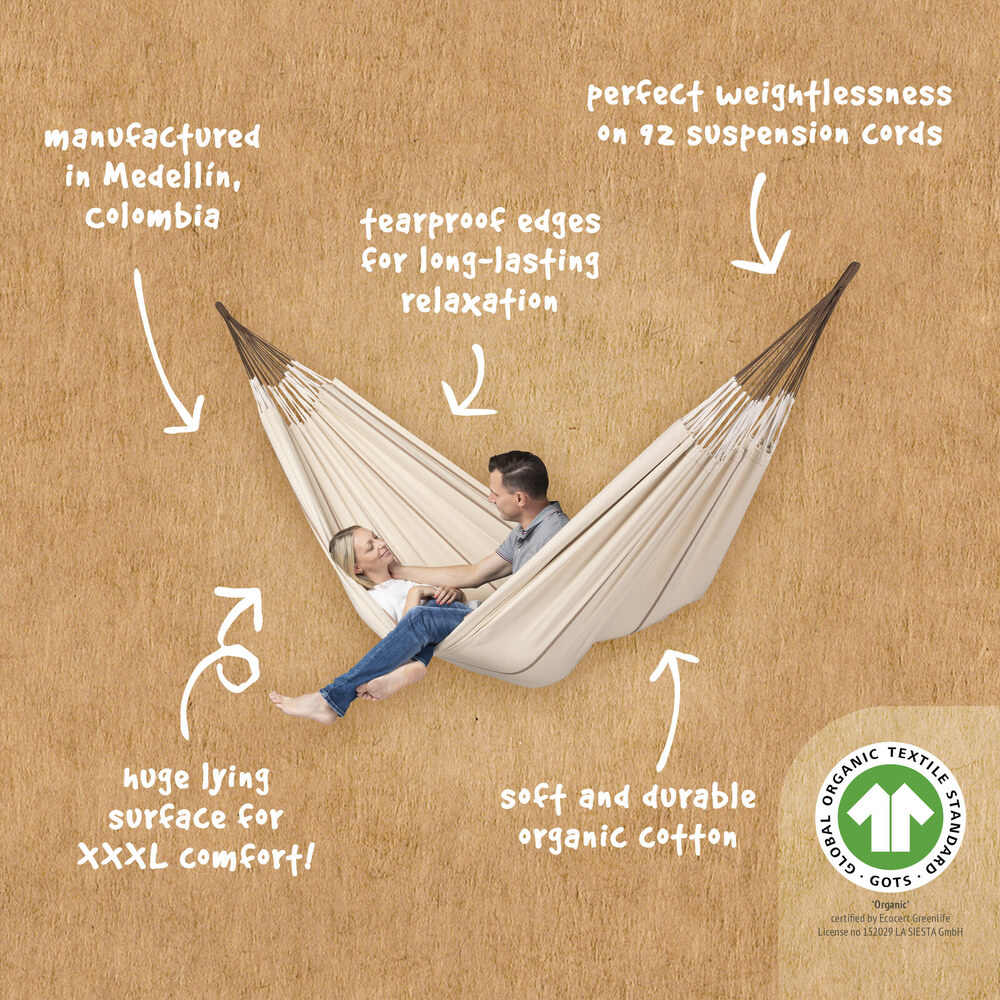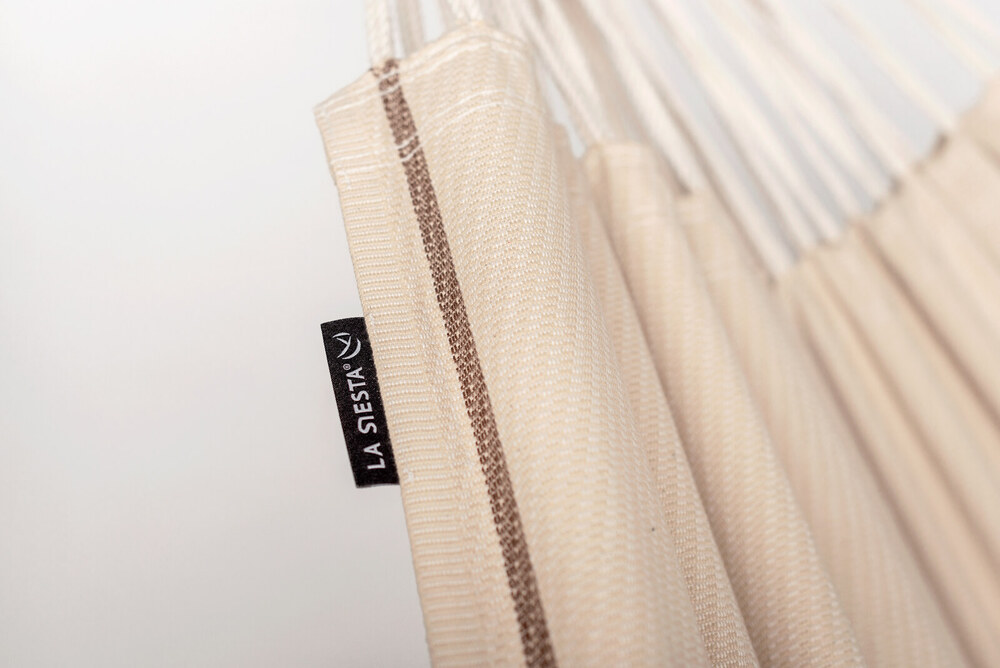 A Modesta függőágy szálai 100% tiszta biopamutból készülnek, amit a hitelesített szerves művelés tesz lehetővé. Lélegzetelállítóan gyönyörű természetes színek, melyek tökéletesen illeszkednek életének hangulatához. Hatalmas méret az extra kényelemért.