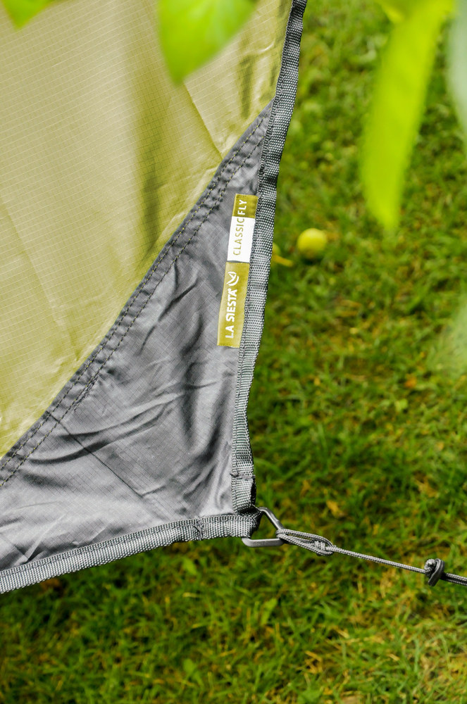 A La Siesta új esővédő ponyvája a Colibri 3.0 függőágyakhoz készült. Az új Colibrik már 3 és fél méter hosszúak, így a 4m teljes hosszúságú tarp ezekhez is bőven elég, nincs kicentizve. Oldalt pedig a 150cm takarás véd meg a legnagyobb esőtől is.