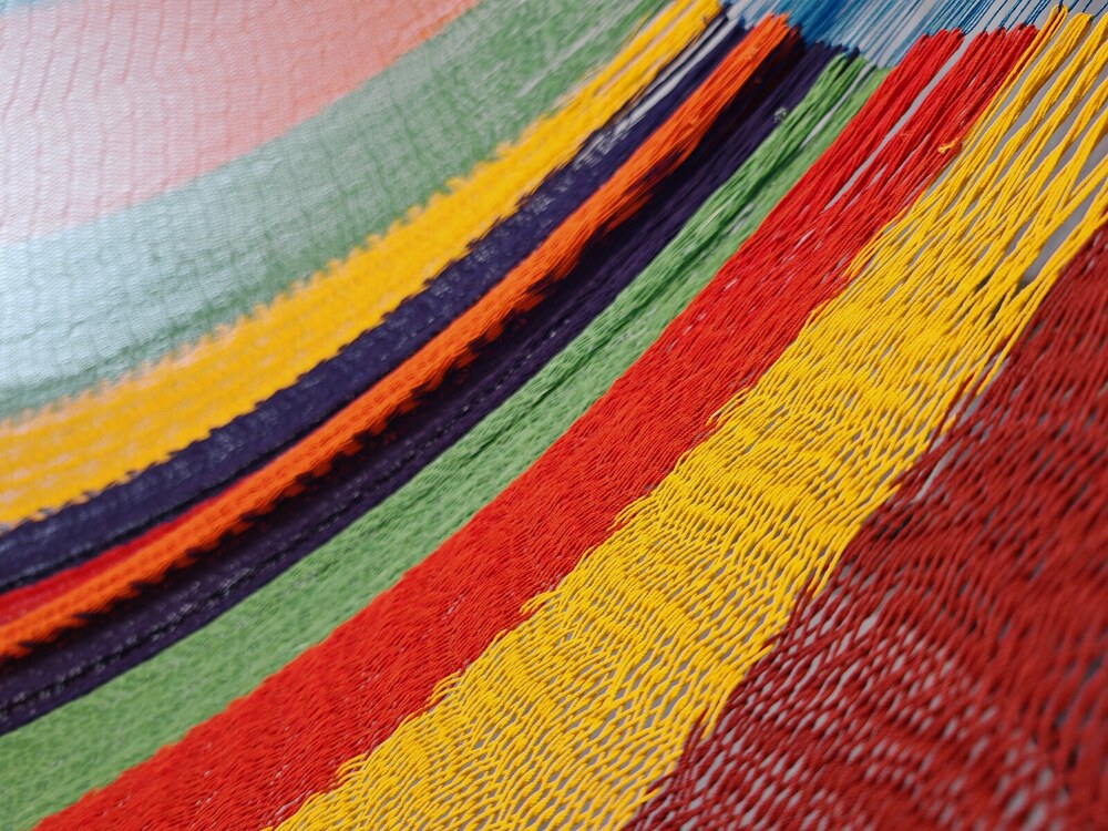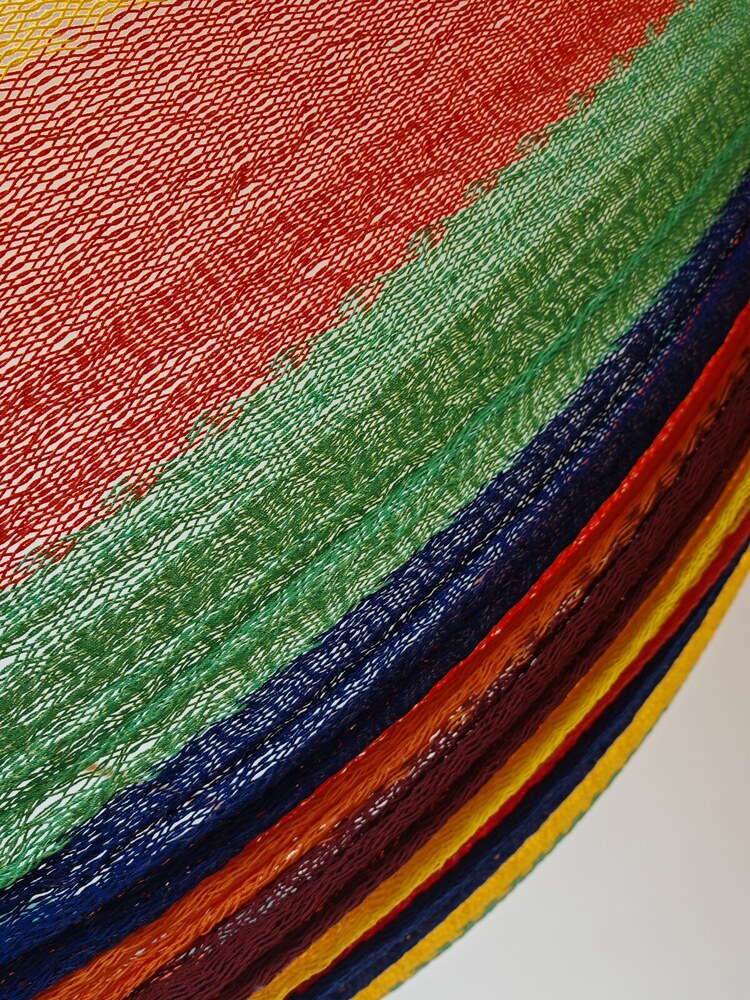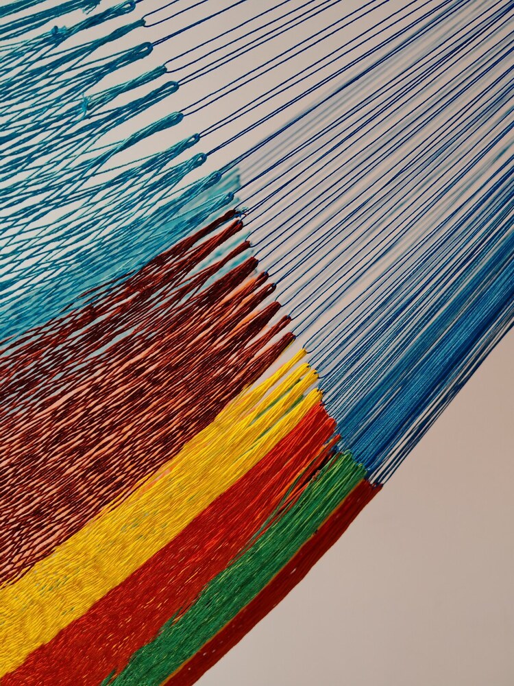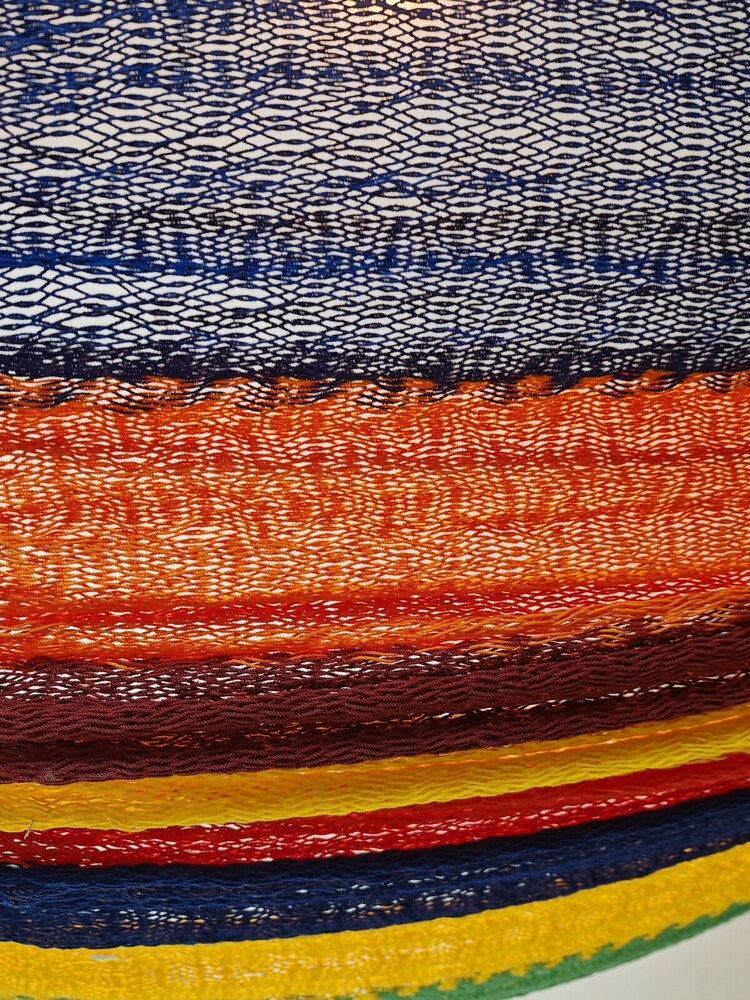 A hagyományos 'sprang' szövési technikának köszönhetően a függőágy tökéletesen felveszi a test alakját. A párhuzamos, de egymásba hurkolt szálak olyan felületet alkotnak, amely hosszanti irányban fix, keresztben rugalmas. A legnagyobb hőségben is szellős, kellemesen hűsít a szálak között átjáró levegő.