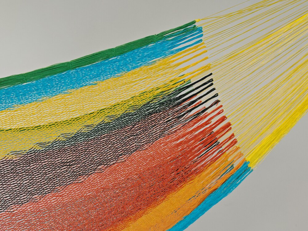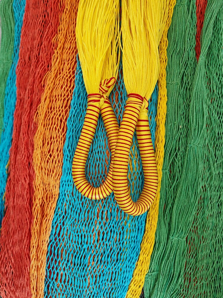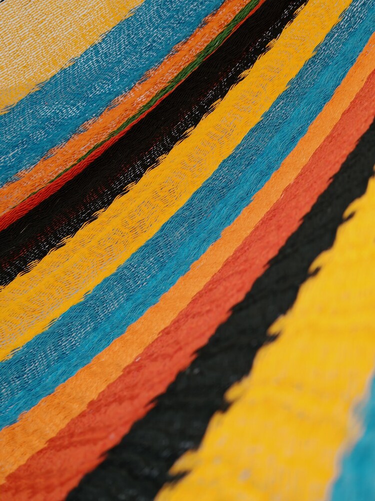 A hagyományos 'sprang' szövési technikának köszönhetően a függőágy tökéletesen felveszi a test alakját. A párhuzamos, de egymásba hurkolt szálak olyan felületet alkotnak, amely hosszanti irányban fix, keresztben rugalmas. A legnagyobb hőségben is szellős, kellemesen hűsít a szálak között átjáró levegő.