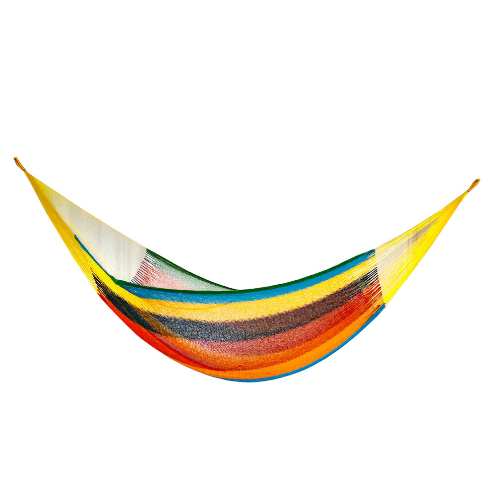 A finom tapintású maya függőágyak Mexikó eldugott falvaiban készülnek, kézi munkával. Egy Maya Titan függőágy fekvőfelülete kb. 2400 méter pamut fonalból készült, hurkolt háló. A két végén az akasztó rész 800 méter szintetikus szálból áll, a szálvastagság 1 mm.