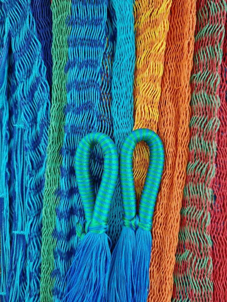 A finom tapintású maya függőágyak Mexikó eldugott falvaiban készülnek, kézi munkával. Egy Maya Titan függőágy fekvőfelülete kb. 2400 méter pamut fonalból készült, hurkolt háló. A két végén az akasztó rész 800 méter szintetikus szálból áll, a szálvastagság 1 mm.