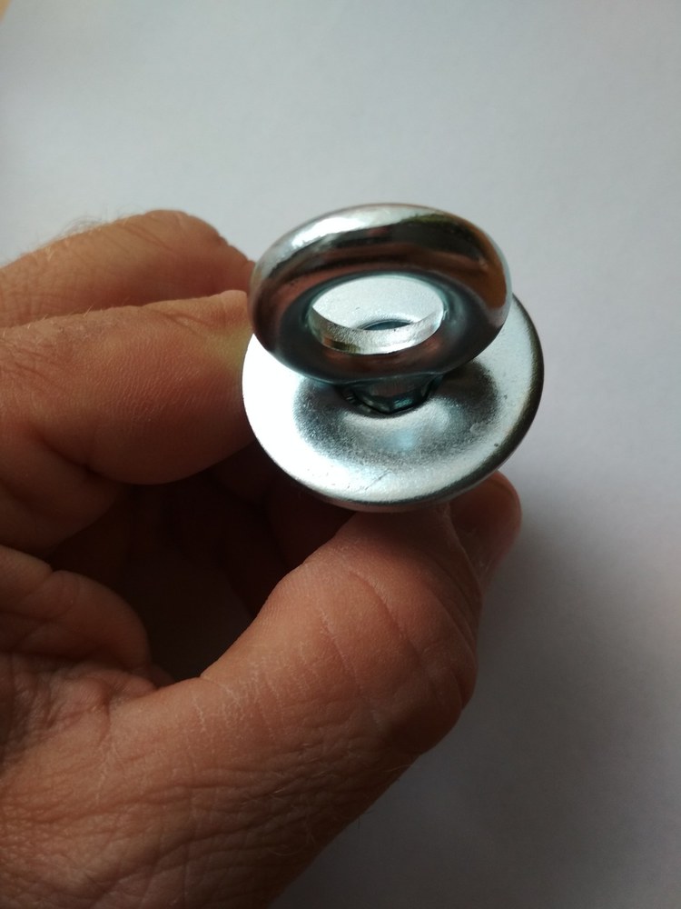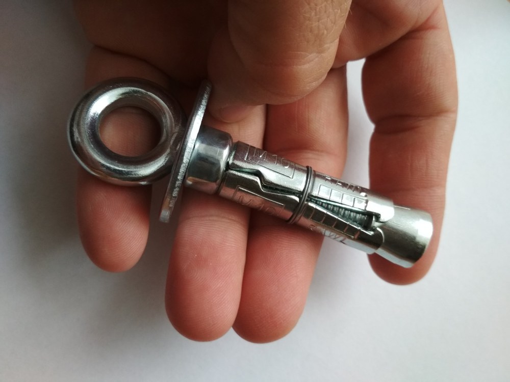 Ezt a csavart akkor használjuk, ha nem lehet 6 centinél mélyebb lyukat fúrni, vagy ha 5-6 cm BETON után üreg van a födémben. A nyolcas kötelet még pont át lehet dugni rajta duplán. Monolit vasbeton födémben vagy panelban bátran használható.
