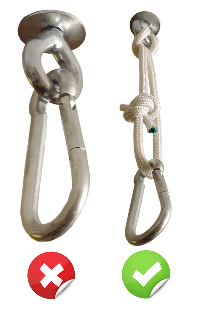 Ebben az esetben az elsőtől 10-25 centi távolságban fúrd be a második csavart,majd mind a két csavarra együtt akaszd fel a kötelet úgy, hogy egyenlő terhelést kapjon a két csavar!