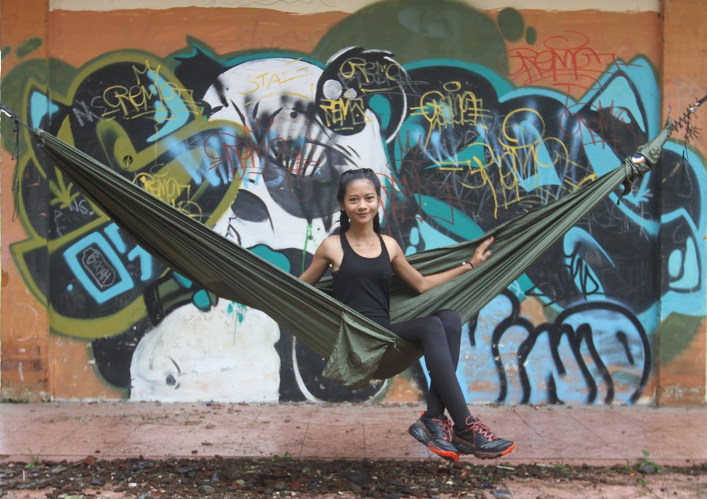 Az eredeti ejtőernyőselyem függőágy.