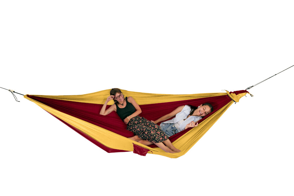 Az eredeti ejtőernyőselyem függőágy, extra nagy méretben. Harminc centivel szélesebb, mint az Original (double) méret.