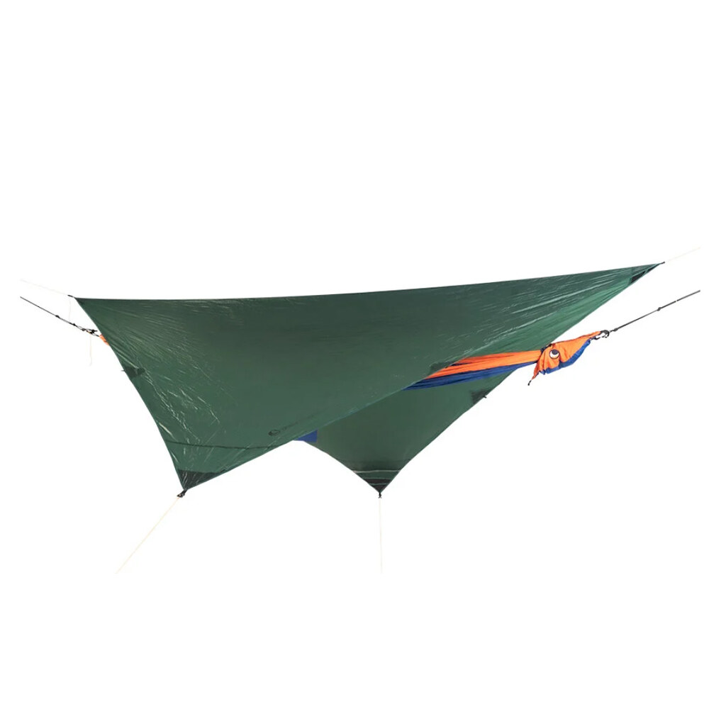 Minimális tömege mellett gyors és hatékony védelmet nyújt a függőágyadnak, felszerelésednek és neked. Ha magasra szereled, akkor kellő árnyékot és légáramlást biztosít, ha alacsonyabbra teszed, akkor távol tartja az esőt és a szelet, hogy gondtalan legyen a pihenésed. A megerősített oldalak és sarkok extrán ellenállóvá teszik ezt a ponyvát, így amiatt sem kell aggódnod, hogy egy erősebb szél kárt tesz benne.