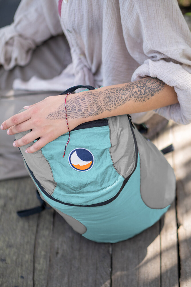 A Ticket To The Moon függőágyak gyártása során keletkezett maradék anyagból készült mini hátizsák.