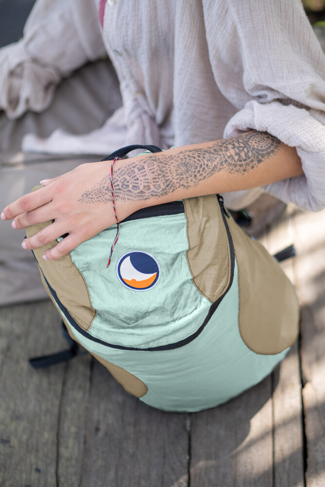 A Ticket To The Moon függőágyak gyártása során keletkezett maradék anyagból készült mini hátizsák.